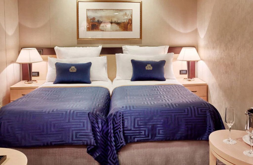 Relax in complete peace and comfort, cocooned from the stress of the everyday. The Britannia Standard Inside staterooms have two beds, a desk area with seat and a shower.