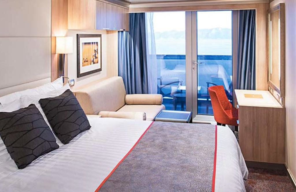 Filled with light from floor-to-ceiling windows overlooking a private verandah, these staterooms include a sitting area, two lower beds convertible to one queen-size bed—our signature Mariner's Dream bed with plush Euro-Top mattresses, and bathtub with premium massage showerheads.