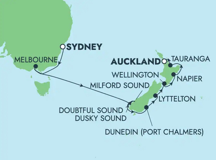 Begin with a two-night hotel stay in vibrant Sydney before joining Norwegian Spirit and sailing to cosmopolitan Melbourne. Enjoy time to relax as you cross the Tasman Sea, then take in the stunning scenery of Milford Sound. Journey up New Zealand’s East Coast, exploring lively cities and charming towns, before concluding your cruise in Auckland.