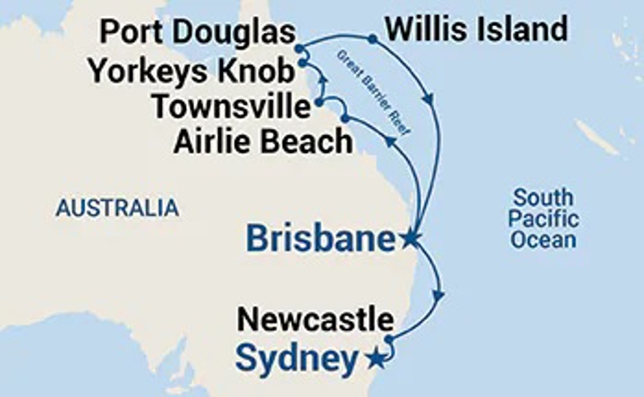 Note: Port Douglas is an anchorage port. Passengers transfer to shore via ship's tender.
