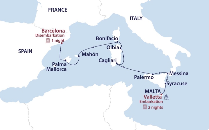 Welcome to Malta. On arrival at Valletta Airport make your way to the Arrivals Hall to meet our representative, followed by a transfer to our group hotel. At the hotel, visit our hospitality desk in the lobby to meet our team who will provide you with useful information regarding pre-embarkation procedures and about your time in Valletta. You will also receive cabin tags for your luggage. Please clearly label the tags with your name and your cabin number on the ship. Today offers time to relax in preparation for our journey.