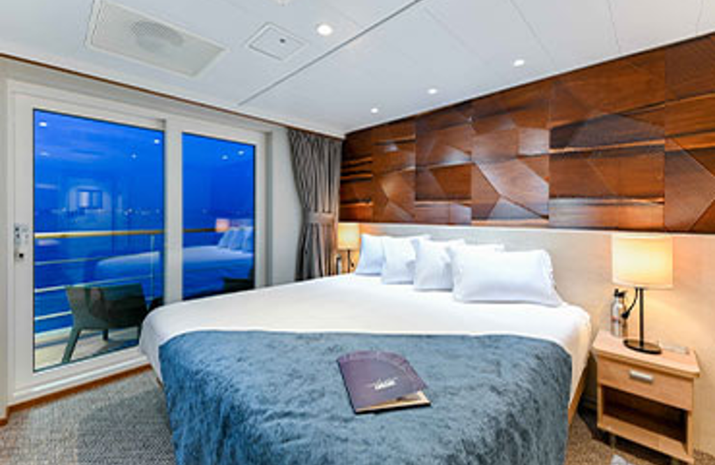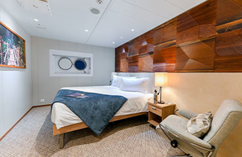 Promenade Deck Staterooms are located below the Explorer Deck and are furnished with a junior King size bed which can be separated into two singles. A wardrobe, desk and armchair are included. The compact ensuite has a toilet, shower and ample storage. A large picture window gives you wide views of the world outside.