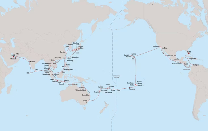06 Jan 27 – 13 May 27 127 nights MIAMI to DOHA