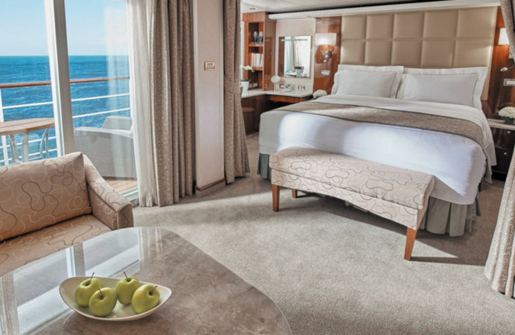 The luxurious suite has been carefully designed to maximize space and comfort. Relax on your private balcony and indulge in your lavish bath amenities as you recharge and ready yourself for new adventures in the next port of call. This suite also includes priority online reservations for shore excursions and dining, and you’re encouraged to call on the services of a personal butler for special requests.