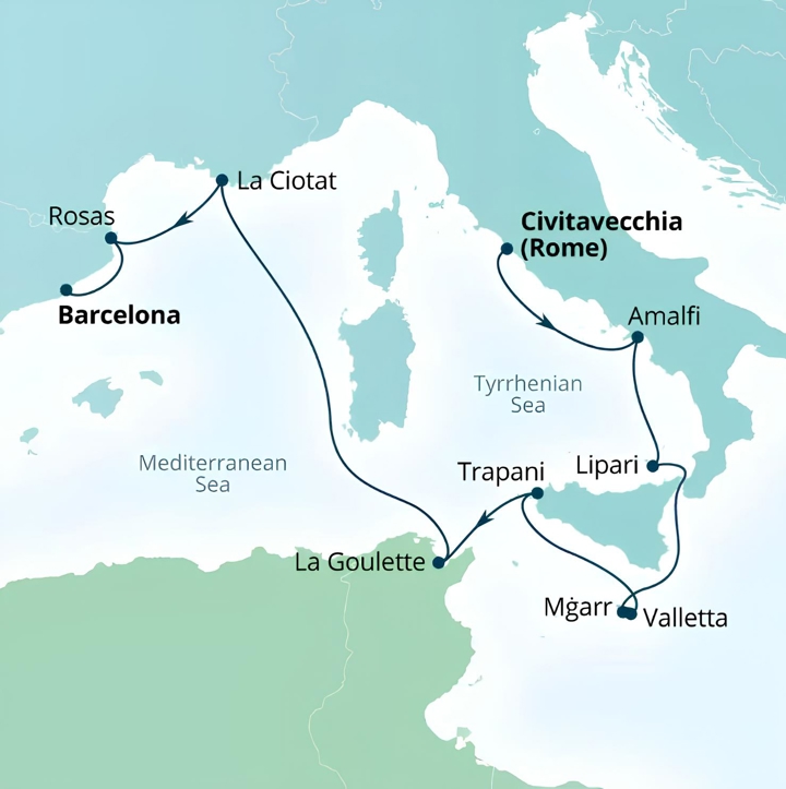 Explore the magnificent wonders of Rome with a three-night hotel stay before joining the ultra-luxury ship Seabourn Ovation. Set sail to uncover stunning shores, ancient history and exquisite cuisine. Upon conclusion of your voyage, enjoy a two-night hotel stay to explore the charming seaside city of Barcelona.