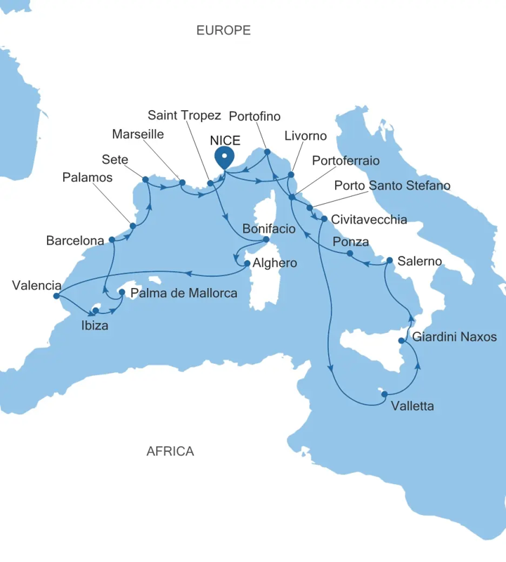 Journey through the heart of the Mediterranean on an unforgettable voyage linking glamorous ports, historic cities, and idyllic islands. From the chic allure of Saint-Tropez and the timeless beauty of Florence to Malta’s golden architecture and the vibrant streets of Barcelona, each destination offers its own distinct character. Stroll cobbled lanes, relax on sunlit terraces, and explore UNESCO treasures as you weave through France, Italy, Spain, and beyond before returning to the elegance of Nice.