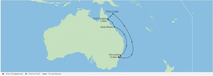 Celebrate Christmas with an unforgettable journey along Australia’s breathtaking east coast. From Sydney’s festive sparkle to Newcastle’s coastal charm, the route winds north to the turquoise shores of Airlie Beach, the tropical beauty of Cairns and Port Douglas, and the serene stretch past remote Willis Island. With sun-soaked days, vibrant ports, and the magic of the holiday season, this is a festive escape that blends relaxation, exploration, and celebration in perfect harmony.