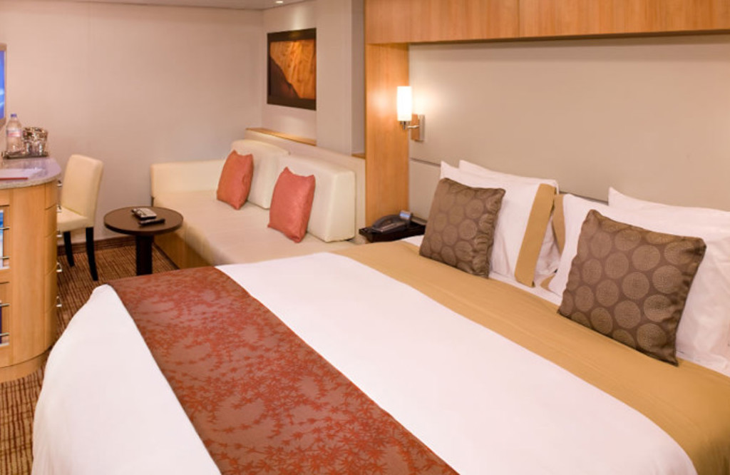 Ocean View staterooms, the ideal place to unwind at sea. These perfectly indulgent spaces come furnished with Celebrity’s eXhale(R) bedding featuring the luxury king sized* mattress and everything else a modern traveler needs.