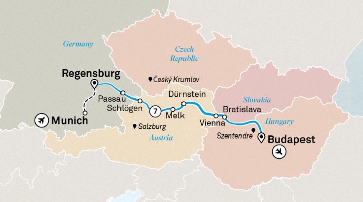 Our most popular Danube cruise immerses you in the proud traditions and diverse cultures that span its length. Cruising east from the ancient city of Regensburg, you’ll travel through four countries and experience countless moments of wonder with Scenic’s signature Nth Degree service. Palaces, monasteries, museums and cathedrals await, each highlighting the unique story of their nation. Taste beer in Bavaria, visit the picturesque medieval village of Ceský Krumlov, sip wine in the Wachau Valley and enjoy an exclusive private concert in the opulent Palais Liechtenstein. This itinerary operates Scenic Seasonal departures in March with altered itineraries. Please select dates below to view details in full.