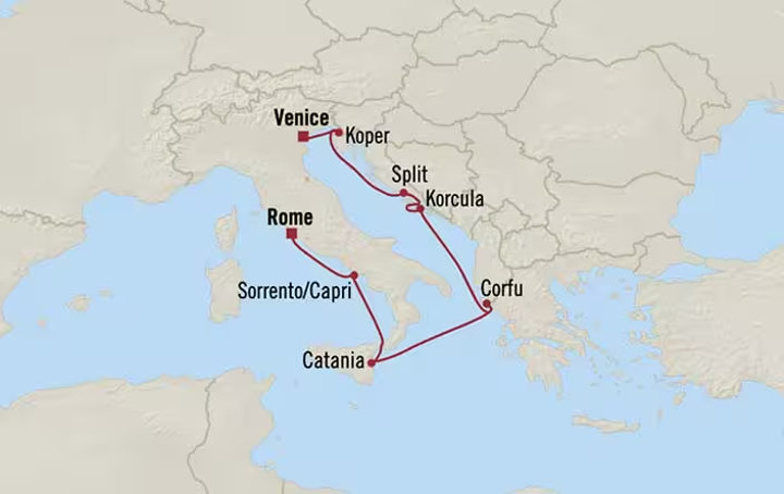 After a short stay in Venice, your holiday continues with Oceania Cruises for an elegant Mediterranean sailing through Croatia, Montenegro, and the Greek Isles. With refined dining and relaxed luxury onboard, this ocean journey expands the view — connecting the romance of river cruising with the adventure of the open sea.