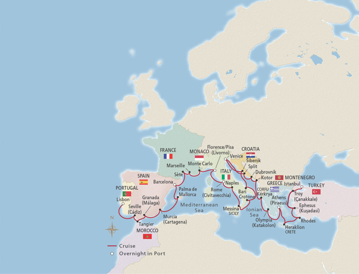 This ultimate voyage combines 5 individual cruises, includes 10 countries with 29 port stops and included tours. Discover the Med your way - choose a grand voyage or create your own shorter getaway.