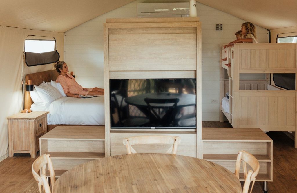 Hervey Bay is surrounded by serene shorelines and sheltered by nearby World Heritage-listed K’gari – Fraser Island. Hervey Bay is also home to secluded oasis, Discovery Parks – Fraser Street, Hervey Bay, ideally set on 8 acres of subtropical gardens. The park is a short tour away from the Great Barrier Reef’s southernmost coral cay, the white sands of Lady Elliot Island. Settle into the subtropics in the comfort of a Deluxe Safari Tent, complete with air-conditioning and ensuite or a comfortable cabin beneath the palms