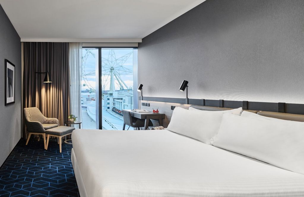 Nestled in the heart of Melbourne’s vibrant Docklands precinct, Vibe Hotel Melbourne Docklands offers a stylish place to stay, conveniently located within walking distance of Marvel Stadium, Southern Cross Station and an exciting array of shopping, dining and entertainment attractions. Unwind in contemporary accommodation, featuring expansive floor-to-ceiling windows that offer stunning views over the iconic Yarra River and the Melbourne city skyline. You can also take advantage of the heated rooftop lap pool and spa, steam room and 24- hour accessible fitness centre.