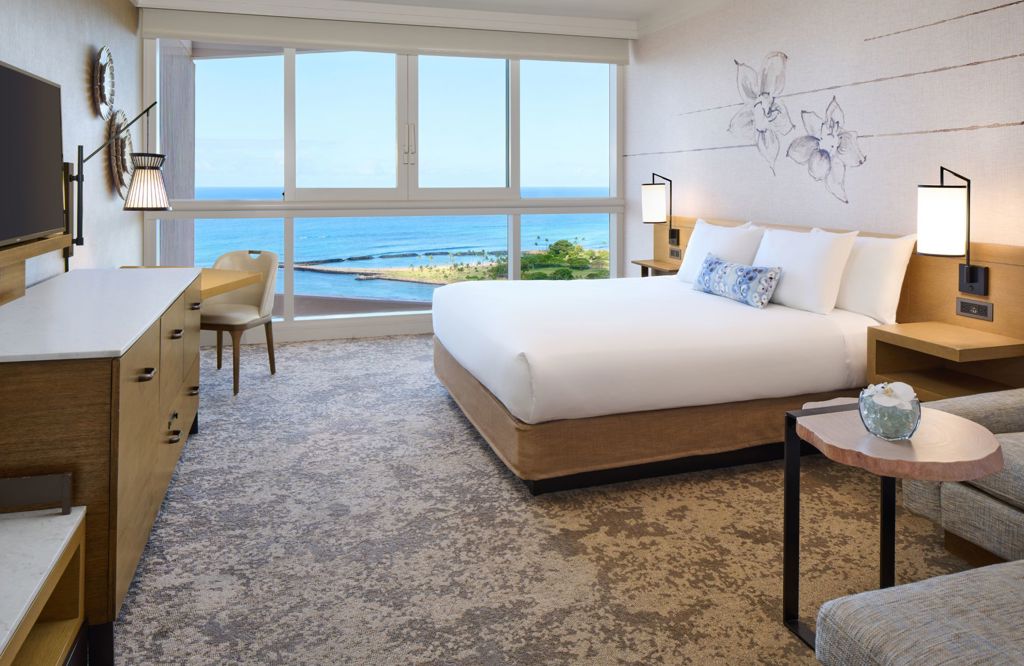 The Oceanfront Premier Rooms at Prince Waikiki offer stunning, unobstructed views of the Pacific Ocean, blending modern luxury with beautiful island elegance.