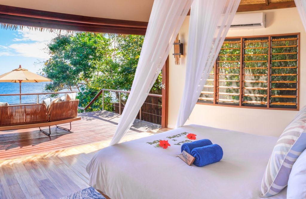 These bungalows offer spectacular views of the lagoon and reef below, with convenient access to the southern beach. Designed in a modern Pacific style, the Royal Davui bungalows feature thatched roofs, high ceilings, and your own private plunge pool for an unparalleled island experience.