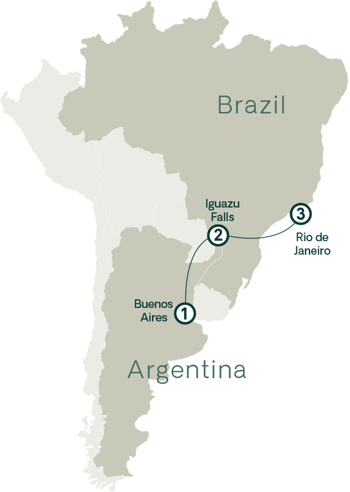 - Domestic flight from Buenos Aires to Puerto Iguazu and Foz do Iguacu to Rio de Janeiro
