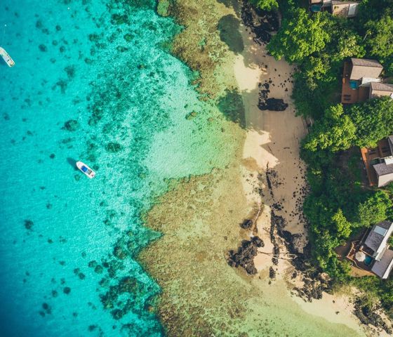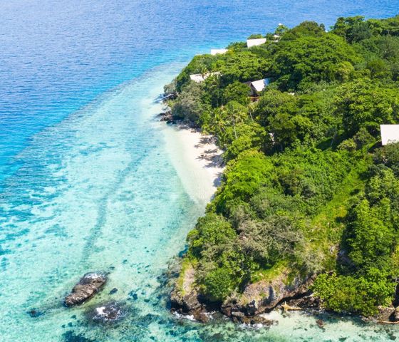 A quarter of the island is clothed in pristine rainforest and almost the entire island is surrounded by 20 to 30-metre cliffs, and dramatic beautiful chasms and coves provide perfect swimming spots.