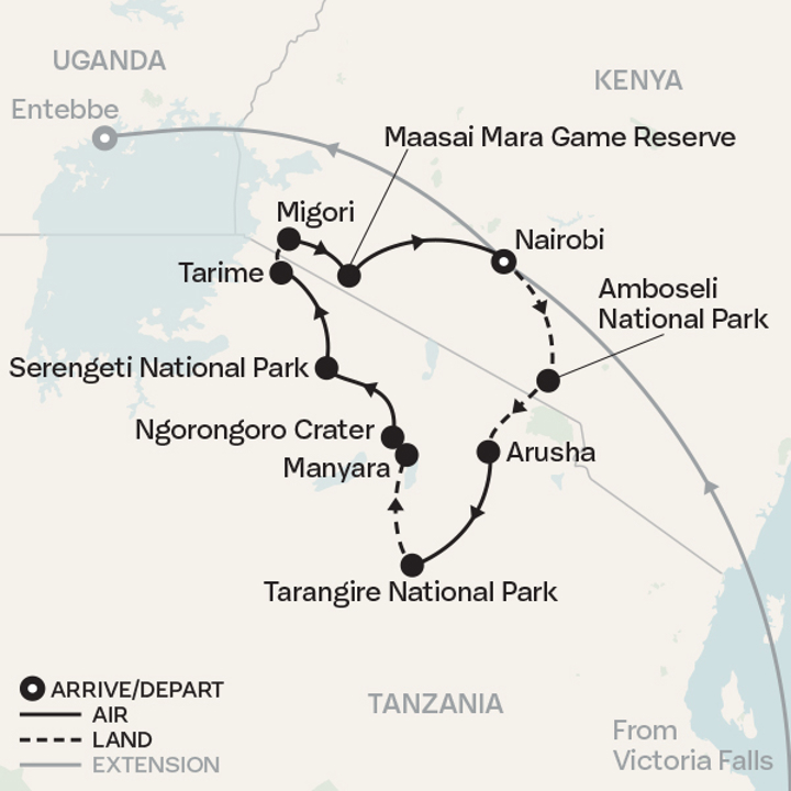 • Internal Air Included (Economy Class, $3522 value) Arusha/Tarangire; Manyara/Serengeti/Tarime; Migori/Maasai Mara/Nairobi