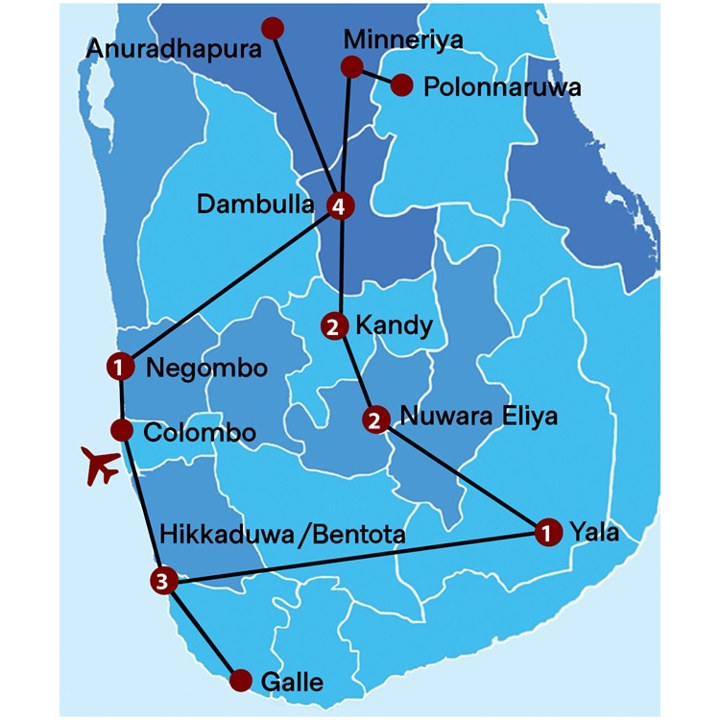 by some last-moment shopping. Your tour finishes with a direct transfer to Colombo airport.