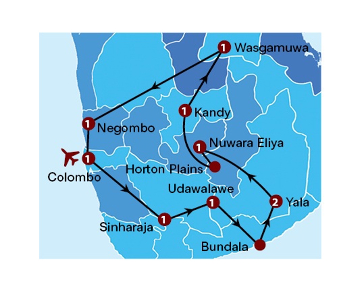 After leisurely breakfast, tour finishes with direct transfer to the Colombo