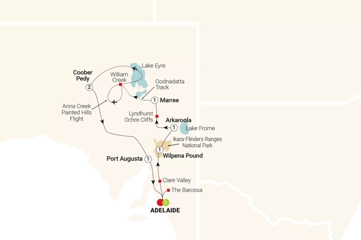The Barossa needs no introduction – your journey today will take in one of Australia’s oldest wine regions, and local makers know a thing or two about creating memorable vintages. Lambert Estate reveals some of the finest regional drops, your lunchtime tipples complemented by glorious views over the vines. Cheers to that! You’ll arrive in plenty of time for your Adelaide flight, your heart, mind and spirit filled with the natural and human wonders of a region that exudes superlatives.